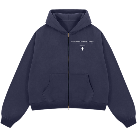 "God Will Never Leave You" Unisex Oversized Premium Boxy Cropped Fleece 380 GSM Zip-up Hoodie